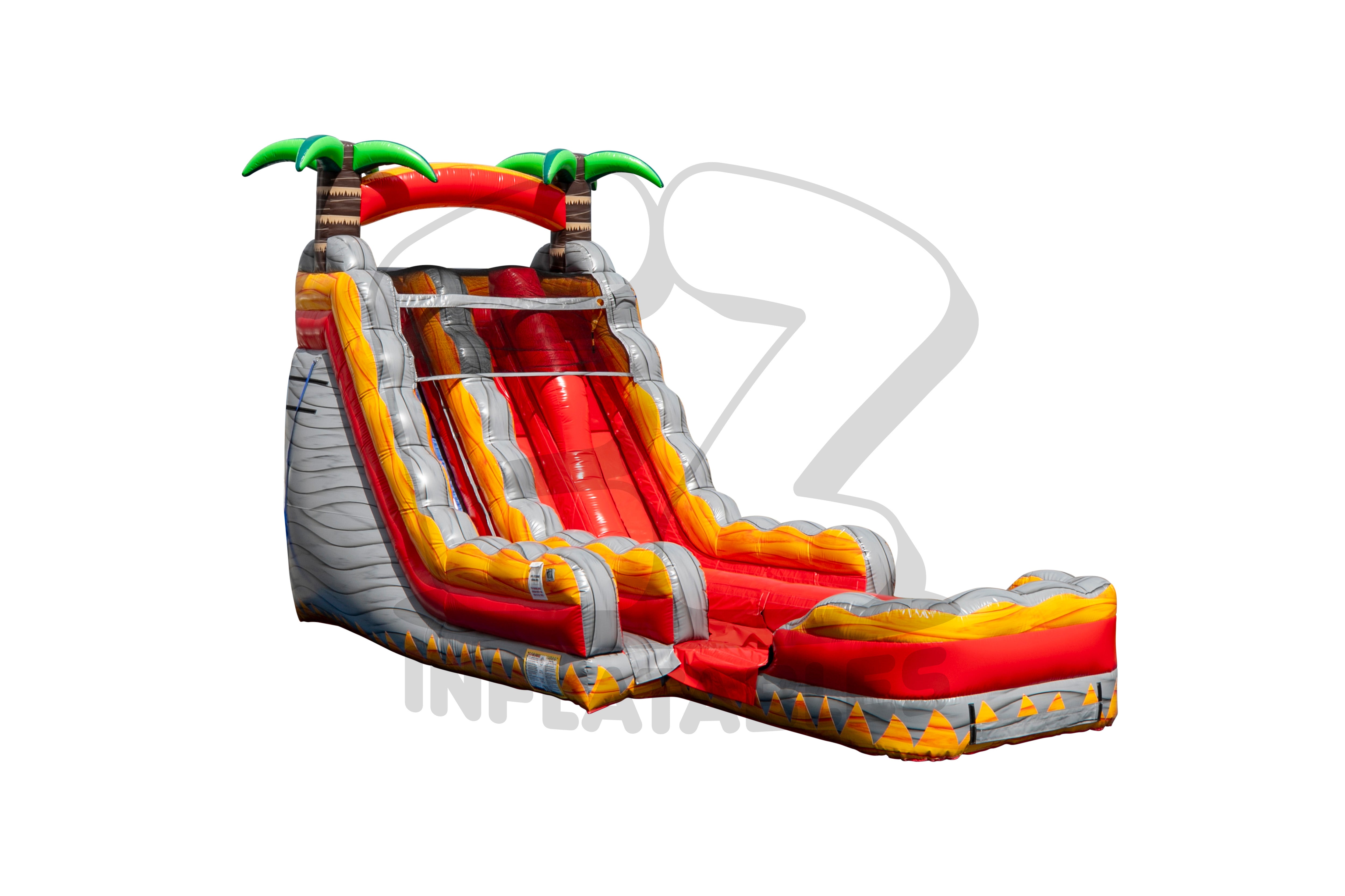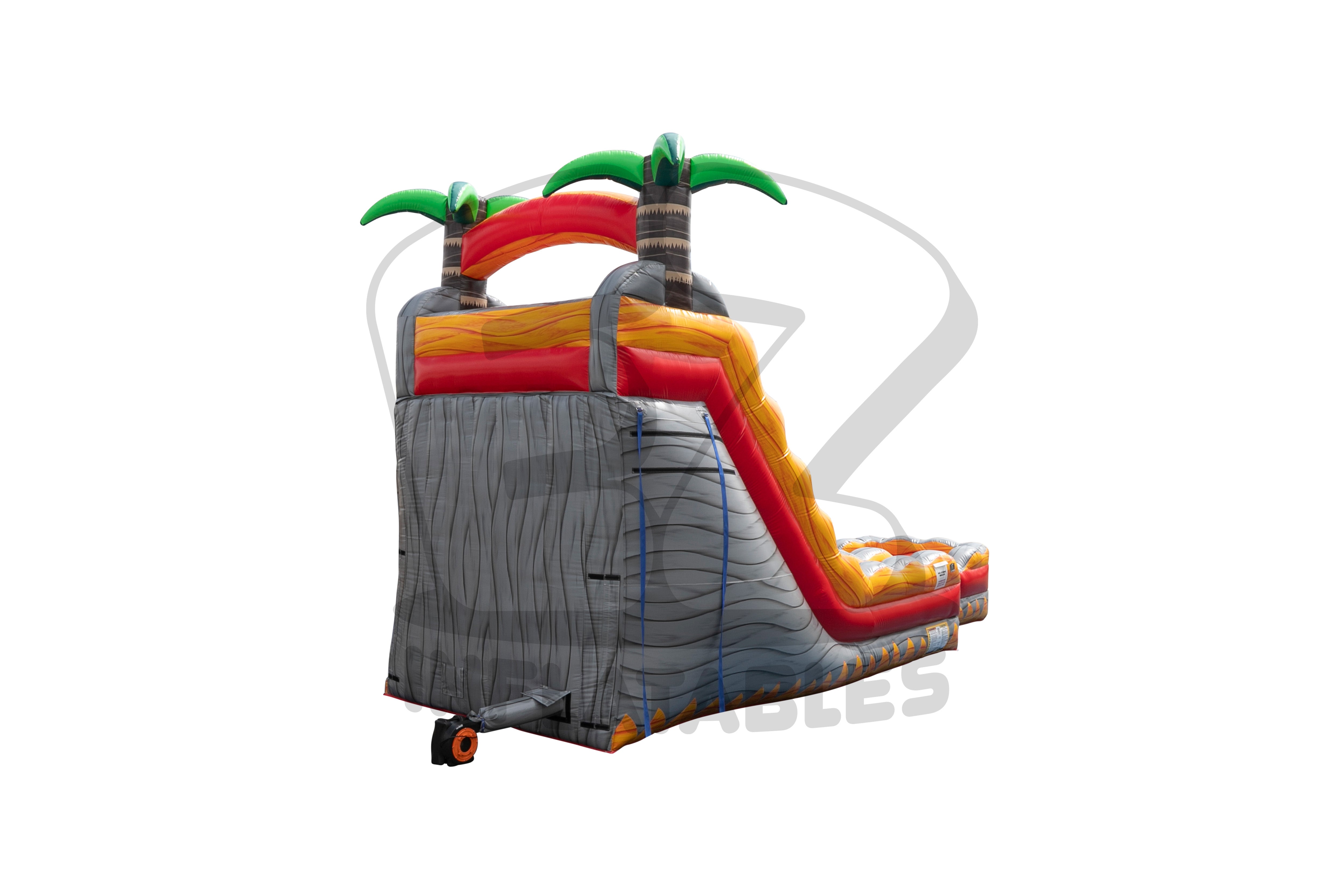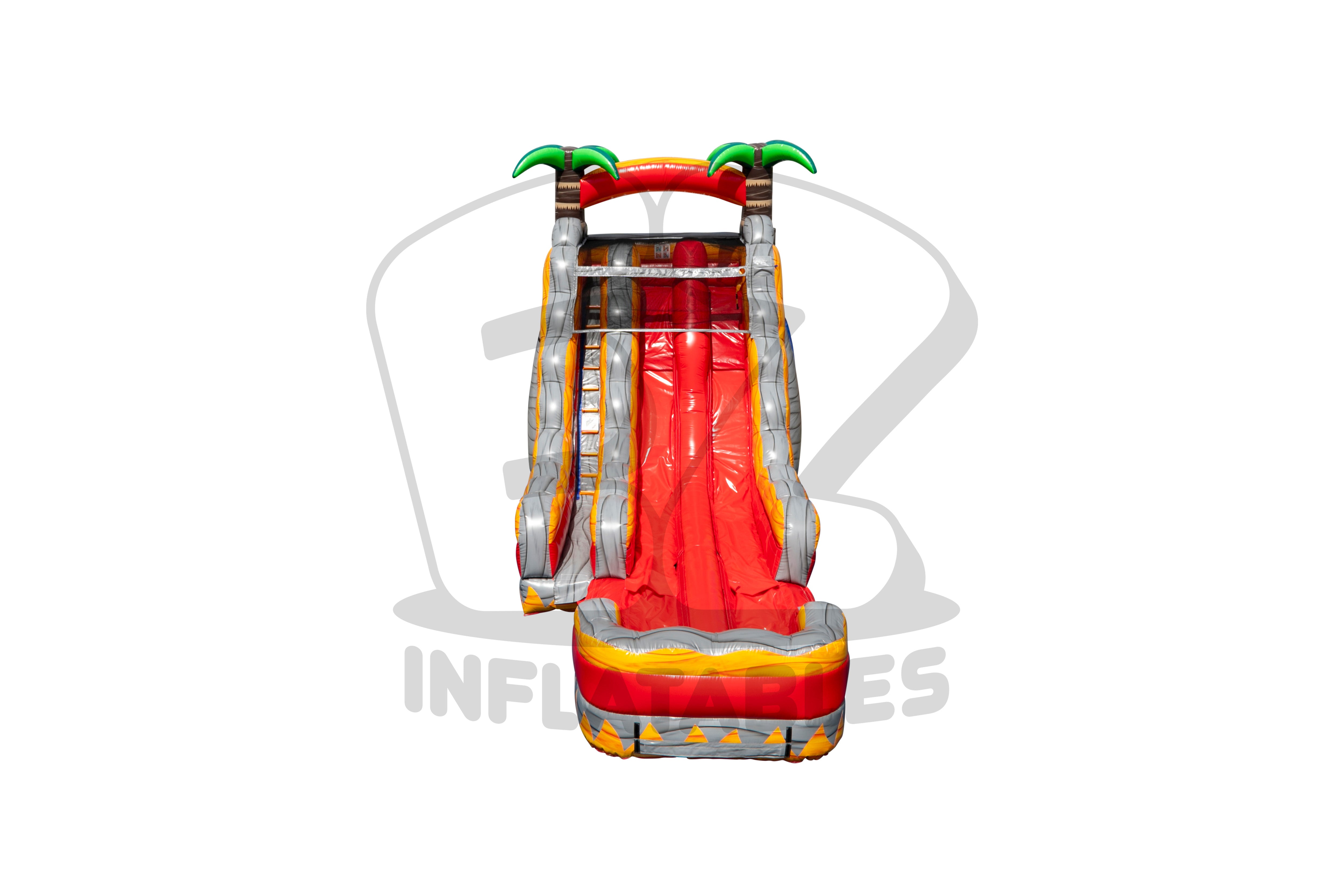 18 Ft Tropical Lava Rush Dual Lane EZ Inflatables Water Slide. It’s a perfect option for any event where folks want to cool off and have some adrenaline-pumping fun. Dimensions: 36'x13'x18', stakes, transportation bag. 1 year limited warranty