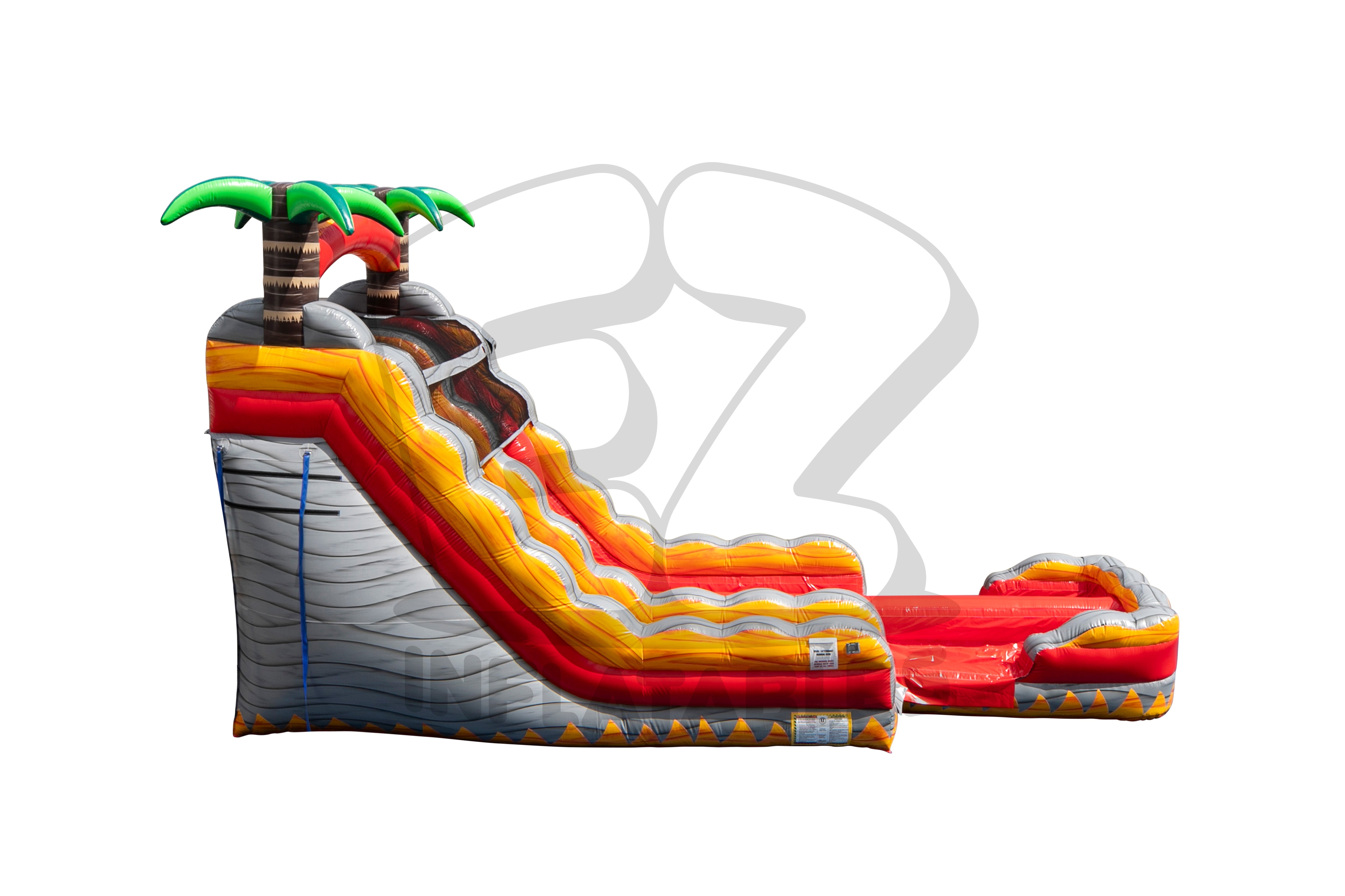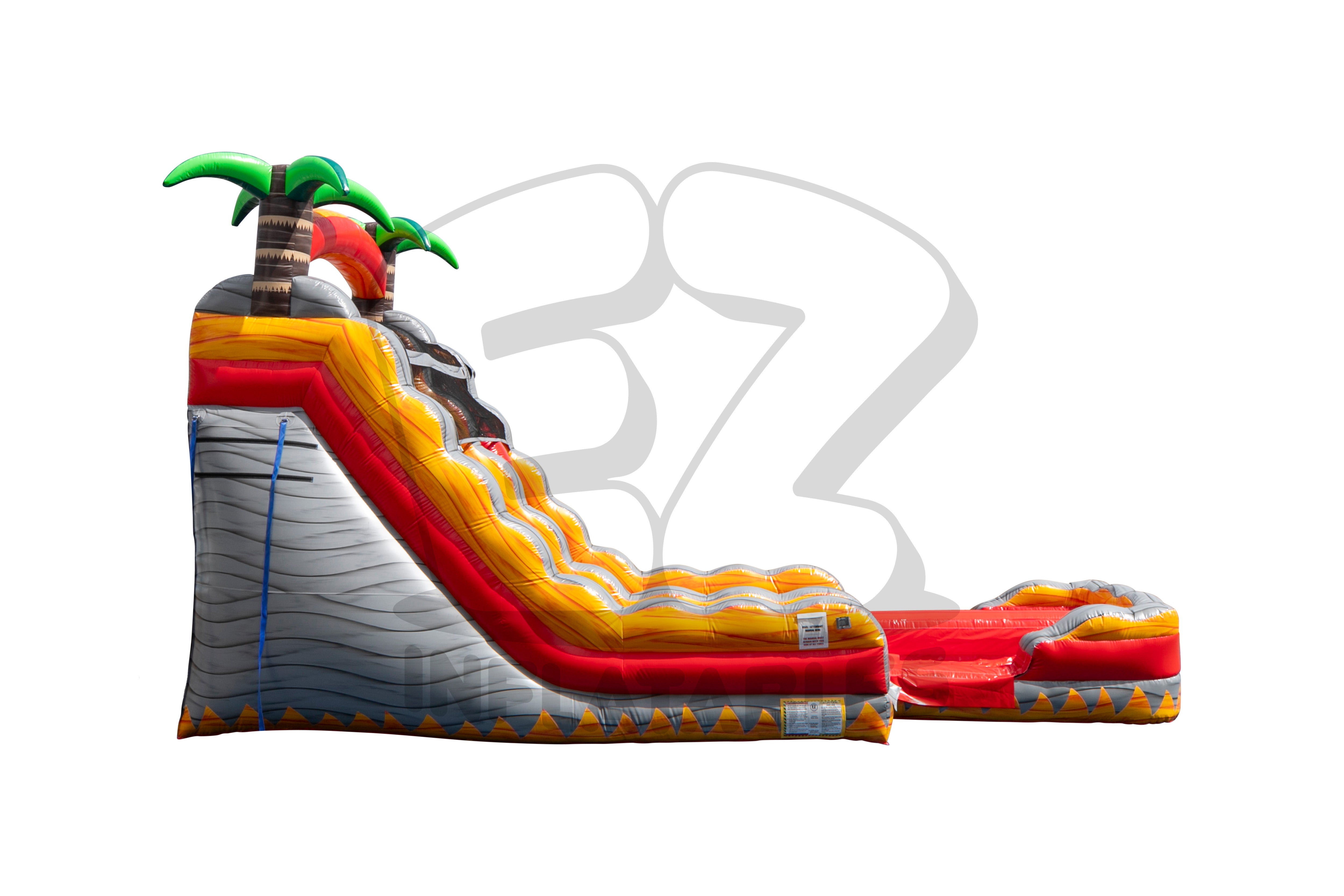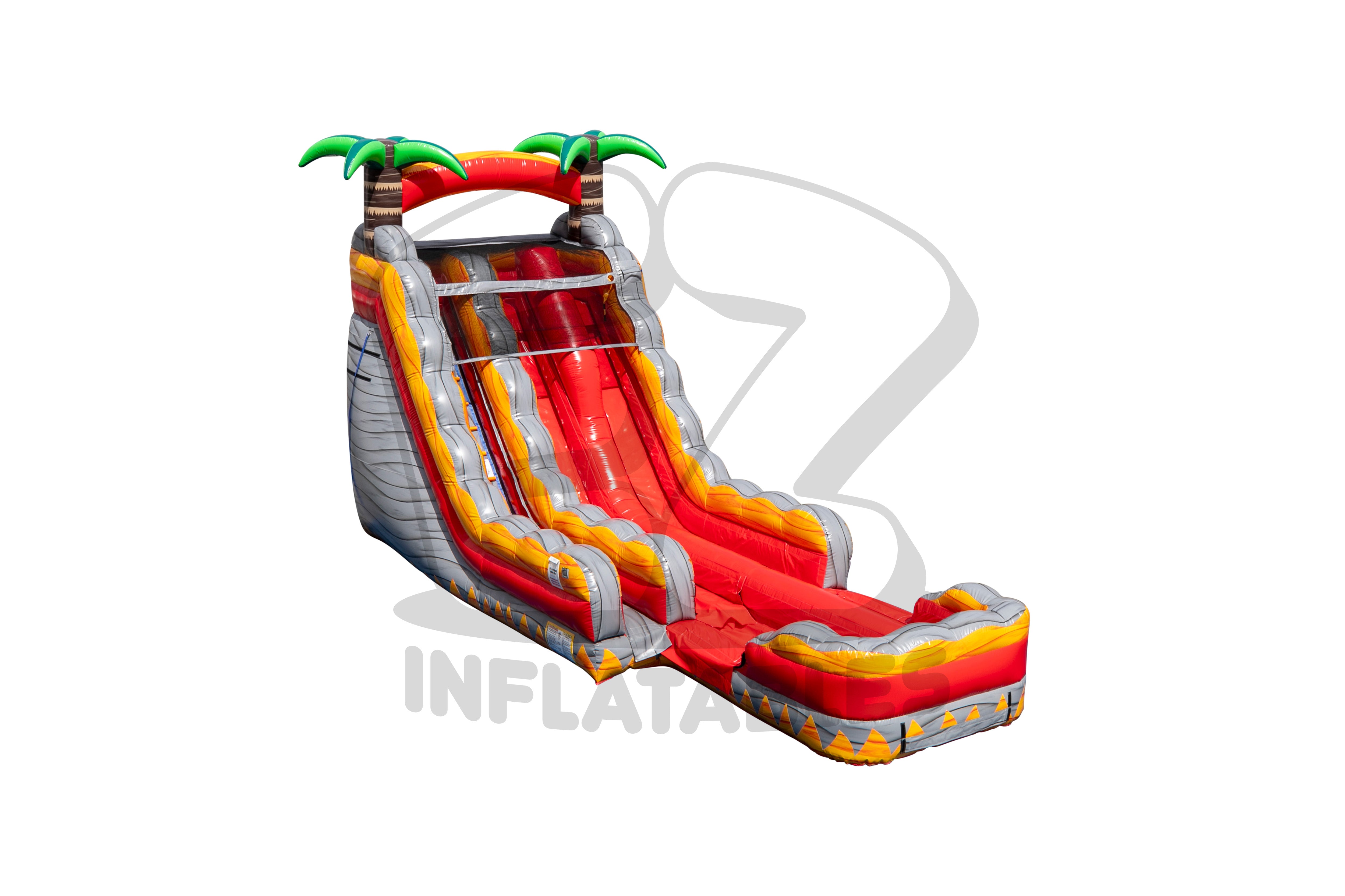 18 Ft Tropical Lava Rush Dual Lane EZ Inflatables Water Slide. It’s a perfect option for any event where folks want to cool off and have some adrenaline-pumping fun. Dimensions: 36'x13'x18', stakes, transportation bag. 1 year limited warranty