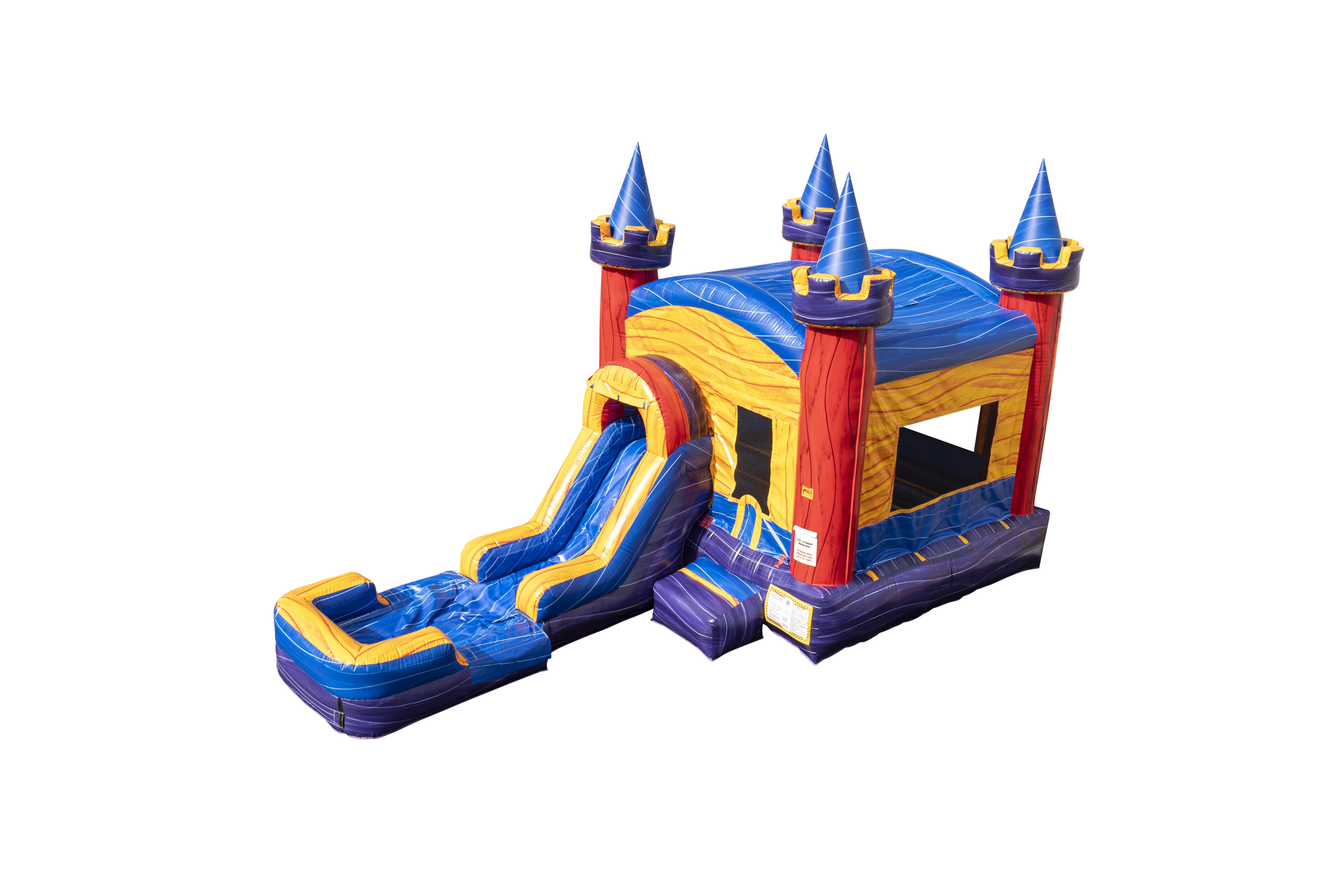 Our EZ combos have all the fun of a larger combo without the size! Complete with a roomy jumping area, basketball hoop and slide, EZ combos are the perfect compact inflatable for maximum entertainment. The Castle Mania IP SL EZ Combo-CEZ-IP11 is a perfect unit to use inside or outside, and has a flashy design that’s sure to draw a crowd!