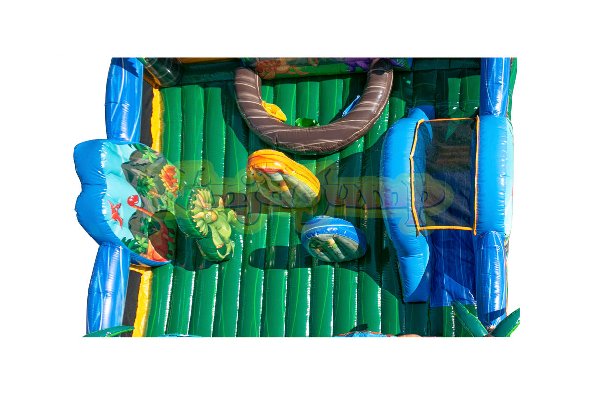 This large inflatable game for toddlers can be an ideal centerpiece for a Family Entertainment Center, Indoor Playground or a backyard party. The inflatable play structure takes participants up a climb and down a slide and past pop-ups to facilitate maneuvering skills and build confidence. The Dinosaur-themed inflatable play structure guarantees hours of enjoyable physical activity. Each game has mesh windows for easy viewing, and is constructed of the fire-resistant, lite n' strong™ vinyl for easy portability, durability and safety, and comes with all the necessary accessories for an easy set up and take down.