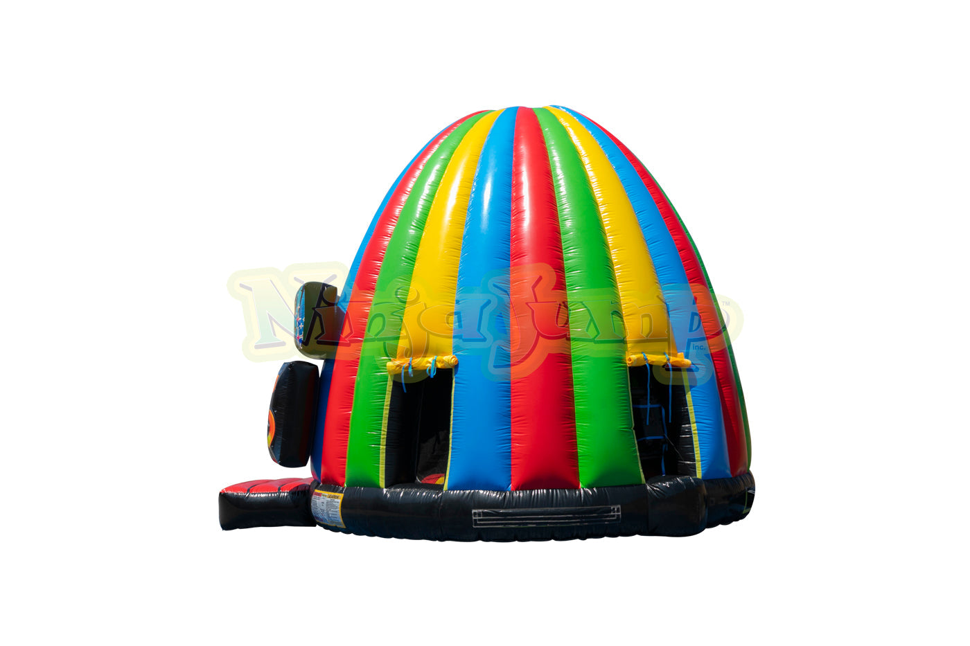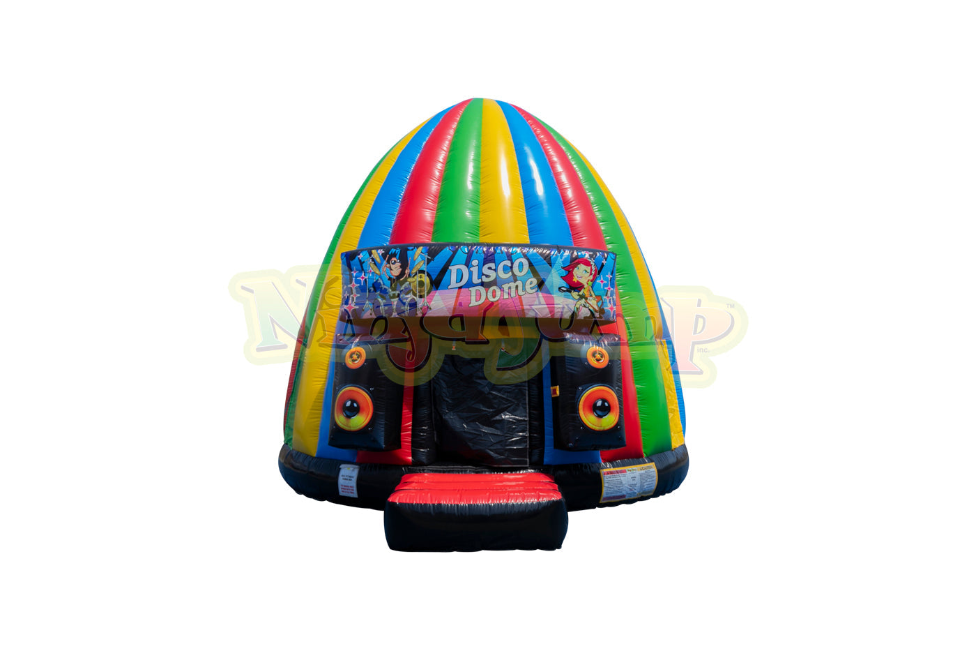 The Disco Dome bounce house is the perfect way to combine fun and healthy activity, and will add value to any Party Rental or Indoor FEC! With a variety of colors, shapes and themes, our moonwalks offer kids of all ages exciting aerobic activity. This jumper has 360-degree mesh windows, so parents and spectators can have a clear view of all the fun. Our moonwalks are made safe and secure with lite n strong™, fire-resistant vinyl making it safer, portable and more durable.