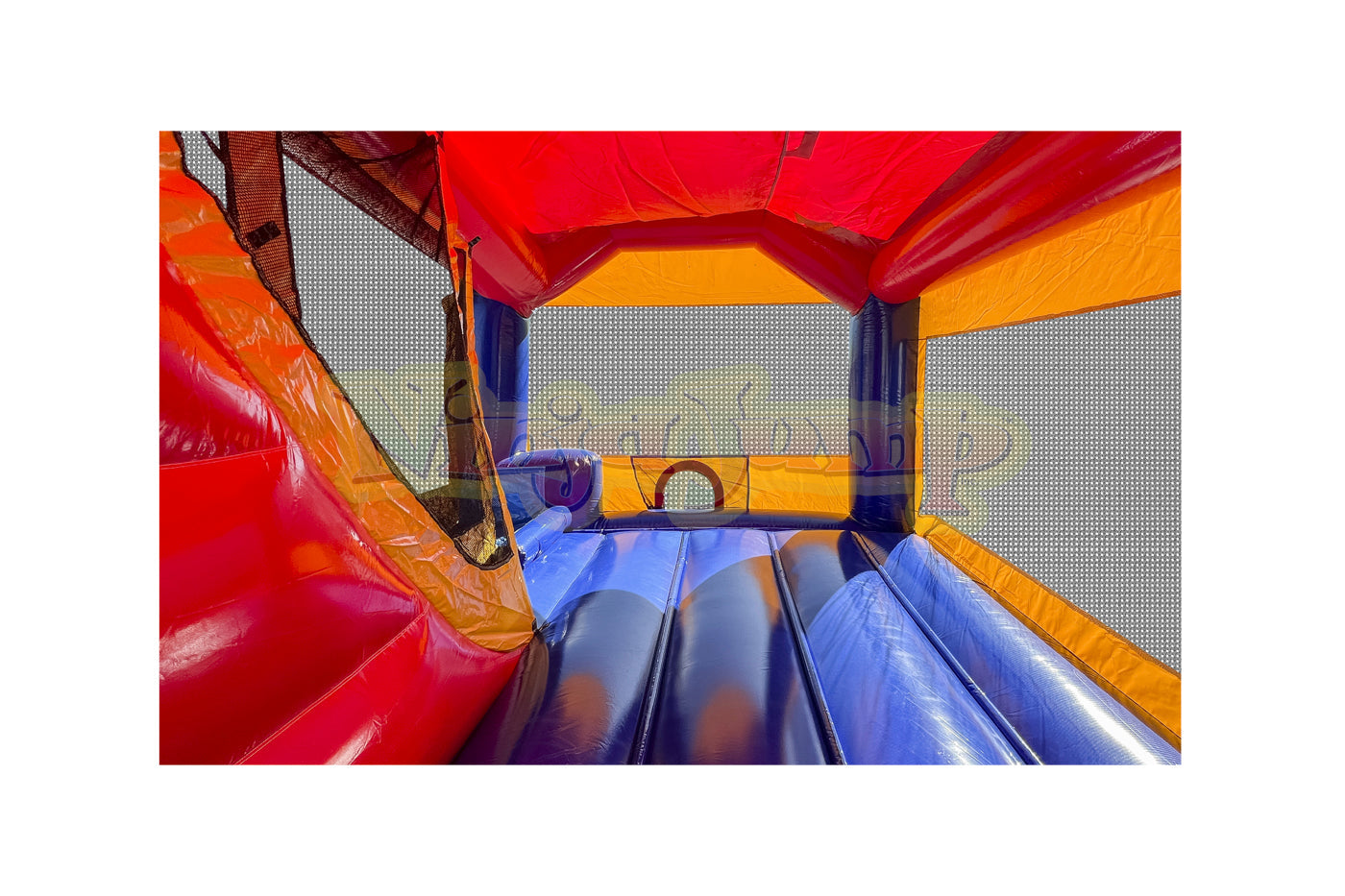 D) No Warranty is provided by EZ Inflatables, Inc. on Zippers, Netting, Mesh. The warranty shall apply to your inflatable plus all accessories, equipment and parts manufactured by EZ Inflatables, Inc.. Wear covers such as entrance covers or mats and slide covers with steps are not warranted beyond the first 90 days after buyer receives the order. These covers are intended to reduce wear on the inflatable and require periodic replacement. A product shall not be considered defective if it is a different color than shown in EZ Inflatables, Inc. catalog and/or website, and no warranty is made relating to color, digital printing or any airbrushing done on any unit. All requests of buyer for all warranty work and replacement are subject to product inspection at EZ Inflatables, Inc. factory in Glendale, California. Ordinary wear and tear will not invalidate EZ Inflatables, Inc. limited warranty, but misuse, improper handling or storage, improper repairs, improper maintenance and care, lack of ground cover under inflatable, or accidental, abusive or negligent treatment of the product will invalidate EZ Inflatables, Inc. warranty. Buyer must use stakes and all tie-down tethers at all times to insure the safety of users and the equipment. This warranty is not a guarantee that the product, will not through use, handling and storage, develop tears or punctures from time to time; the repairs of which are the responsibility of Buyer. Buyer pays a shipment cost to EZ Inflatables, Inc. for repair, and EZ Inflatables, Inc. pays the shipment cost to the Buyer after it has been repaired. No statement, remark or representation of any employee or agent of EZ Inflatables, Inc. may vary this Limited Warranty unless in writing and signed by the President of EZ Inflatables, Inc.. - Other Equipment (not manufactured by EZ Inflatables, Inc.): No warranty of any kind is extended by EZ Inflatables, Inc. but EZ Inflatables, Inc. will, to the extent it can legally and contractually do so, assign to Buyer, at Buyer's request, all warranties on such other equipment, if any, offered by the manufactures or suppliers of such other equipment. The fan motor supplied with your inflatable is covered by the blower manufacturer's own warranty. Any claims of defect in the blower operation must be directed to the blower manufacturer directly for repair or replacement. In case of defects in materials, workmanship or defects arising from the selection of material or procedures of manufacture, such defects must become apparent in the inflatable, equipment or part within 24 months of shipping. The extent of seller's liability under this warranty is to defects in material or workmanship. Defects arising from the selection of material or the processes of the manufacture are limited to the repair of such defects or to the replacement (with item free from the defect in question) of any accessory, equipment, or part which is defective in any of such respectswith the exception of color fading. The extent of seller's liability under this warranty as to defects inherent in design is limited to the correction at our expense of all such defects becoming apparent in the inflatable accessory , equipment or part purchased here within one year of use. Seller is not responsible for any lost revenue as a result of a warranty claim by buyer. Seller is not responsible for replacing any inflatable product as a “LOANER” product during a repair of a warranted product. If a “LOANER” product should be available during the repair, buyer will be responsible for all round trip shipping charges and any damages caused to the inflatable supplied. Seller shall make all such repairs, replacements and corrections with care. This warranty shall become void if inflatable is packed wet or repaired by any other repair agency not approved by EZ Inflatables, Inc..