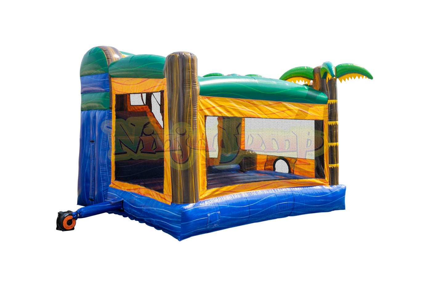 D) No Warranty is provided by EZ Inflatables, Inc. on Zippers, Netting, Mesh. The warranty shall apply to your inflatable plus all accessories, equipment and parts manufactured by EZ Inflatables, Inc.. Wear covers such as entrance covers or mats and slide covers with steps are not warranted beyond the first 90 days after buyer receives the order. These covers are intended to reduce wear on the inflatable and require periodic replacement. A product shall not be considered defective if it is a different color than shown in EZ Inflatables, Inc. catalog and/or website, and no warranty is made relating to color, digital printing or any airbrushing done on any unit. All requests of buyer for all warranty work and replacement are subject to product inspection at EZ Inflatables, Inc. factory in Glendale, California. Ordinary wear and tear will not invalidate EZ Inflatables, Inc. limited warranty, but misuse, improper handling or storage, improper repairs, improper maintenance and care, lack of ground cover under inflatable, or accidental, abusive or negligent treatment of the product will invalidate EZ Inflatables, Inc. warranty. Buyer must use stakes and all tie-down tethers at all times to insure the safety of users and the equipment. This warranty is not a guarantee that the product, will not through use, handling and storage, develop tears or punctures from time to time; the repairs of which are the responsibility of Buyer. Buyer pays a shipment cost to EZ Inflatables, Inc. for repair, and EZ Inflatables, Inc. pays the shipment cost to the Buyer after it has been repaired. No statement, remark or representation of any employee or agent of EZ Inflatables, Inc. may vary this Limited Warranty unless in writing and signed by the President of EZ Inflatables, Inc.. - Other Equipment (not manufactured by EZ Inflatables, Inc.): No warranty of any kind is extended by EZ Inflatables, Inc. but EZ Inflatables, Inc. will, to the extent it can legally and contractually do so, assign to Buyer, at Buyer's request, all warranties on such other equipment, if any, offered by the manufactures or suppliers of such other equipment. The fan motor supplied with your inflatable is covered by the blower manufacturer's own warranty. Any claims of defect in the blower operation must be directed to the blower manufacturer directly for repair or replacement. In case of defects in materials, workmanship or defects arising from the selection of material or procedures of manufacture, such defects must become apparent in the inflatable, equipment or part within 24 months of shipping. The extent of seller's liability under this warranty is to defects in material or workmanship. Defects arising from the selection of material or the processes of the manufacture are limited to the repair of such defects or to the replacement (with item free from the defect in question) of any accessory, equipment, or part which is defective in any of such respectswith the exception of color fading. The extent of seller's liability under this warranty as to defects inherent in design is limited to the correction at our expense of all such defects becoming apparent in the inflatable accessory , equipment or part purchased here within one year of use. Seller is not responsible for any lost revenue as a result of a warranty claim by buyer. Seller is not responsible for replacing any inflatable product as a “LOANER” product during a repair of a warranted product. If a “LOANER” product should be available during the repair, buyer will be responsible for all round trip shipping charges and any damages caused to the inflatable supplied. Seller shall make all such repairs, replacements and corrections with care. This warranty shall become void if inflatable is packed wet or repaired by any other repair agency not approved by EZ Inflatables, Inc..