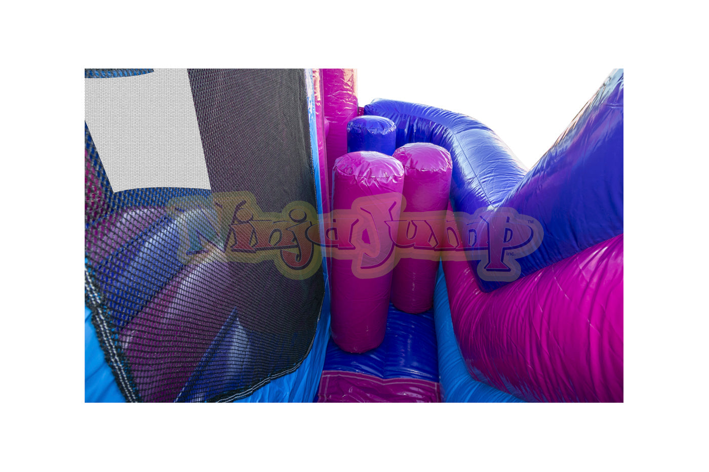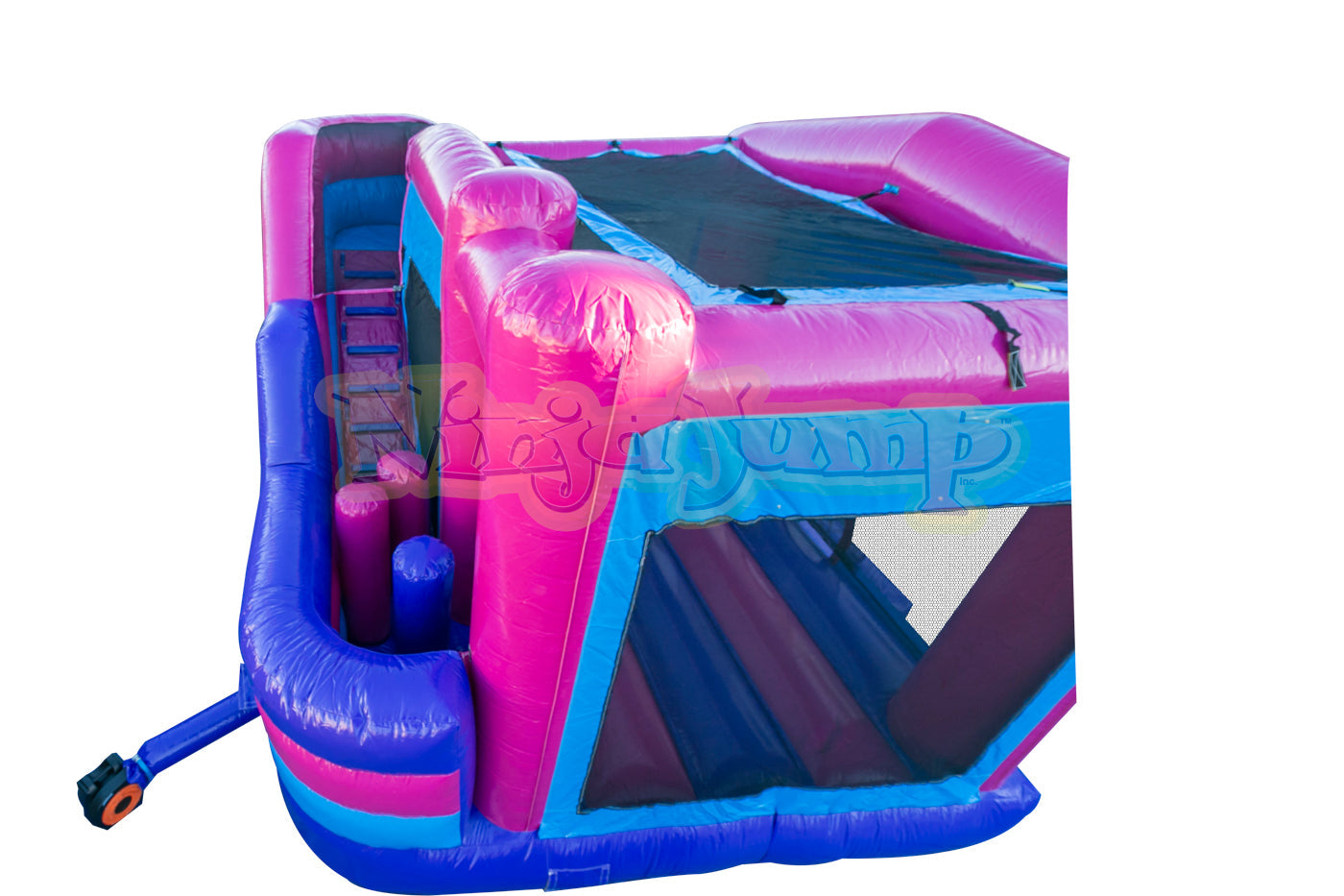 D) No Warranty is provided by EZ Inflatables, Inc. on Zippers, Netting, Mesh. The warranty shall apply to your inflatable plus all accessories, equipment and parts manufactured by EZ Inflatables, Inc.. Wear covers such as entrance covers or mats and slide covers with steps are not warranted beyond the first 90 days after buyer receives the order. These covers are intended to reduce wear on the inflatable and require periodic replacement. A product shall not be considered defective if it is a different color than shown in EZ Inflatables, Inc. catalog and/or website, and no warranty is made relating to color, digital printing or any airbrushing done on any unit. All requests of buyer for all warranty work and replacement are subject to product inspection at EZ Inflatables, Inc. factory in Glendale, California. Ordinary wear and tear will not invalidate EZ Inflatables, Inc. limited warranty, but misuse, improper handling or storage, improper repairs, improper maintenance and care, lack of ground cover under inflatable, or accidental, abusive or negligent treatment of the product will invalidate EZ Inflatables, Inc. warranty. Buyer must use stakes and all tie-down tethers at all times to insure the safety of users and the equipment. This warranty is not a guarantee that the product, will not through use, handling and storage, develop tears or punctures from time to time; the repairs of which are the responsibility of Buyer. Buyer pays a shipment cost to EZ Inflatables, Inc. for repair, and EZ Inflatables, Inc. pays the shipment cost to the Buyer after it has been repaired. No statement, remark or representation of any employee or agent of EZ Inflatables, Inc. may vary this Limited Warranty unless in writing and signed by the President of EZ Inflatables, Inc.. - Other Equipment (not manufactured by EZ Inflatables, Inc.): No warranty of any kind is extended by EZ Inflatables, Inc. but EZ Inflatables, Inc. will, to the extent it can legally and contractually do so, assign to Buyer, at Buyer's request, all warranties on such other equipment, if any, offered by the manufactures or suppliers of such other equipment. The fan motor supplied with your inflatable is covered by the blower manufacturer's own warranty. Any claims of defect in the blower operation must be directed to the blower manufacturer directly for repair or replacement. In case of defects in materials, workmanship or defects arising from the selection of material or procedures of manufacture, such defects must become apparent in the inflatable, equipment or part within 24 months of shipping. The extent of seller's liability under this warranty is to defects in material or workmanship. Defects arising from the selection of material or the processes of the manufacture are limited to the repair of such defects or to the replacement (with item free from the defect in question) of any accessory, equipment, or part which is defective in any of such respectswith the exception of color fading. The extent of seller's liability under this warranty as to defects inherent in design is limited to the correction at our expense of all such defects becoming apparent in the inflatable accessory , equipment or part purchased here within one year of use. Seller is not responsible for any lost revenue as a result of a warranty claim by buyer. Seller is not responsible for replacing any inflatable product as a “LOANER” product during a repair of a warranted product. If a “LOANER” product should be available during the repair, buyer will be responsible for all round trip shipping charges and any damages caused to the inflatable supplied. Seller shall make all such repairs, replacements and corrections with care. This warranty shall become void if inflatable is packed wet or repaired by any other repair agency not approved by EZ Inflatables, Inc..