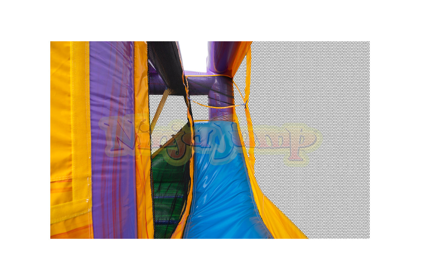 The Backyard combo style bounce house is the ultimate in inflatable jumpers! The large interior jumping area offers a basketball hoop. This bouncy castle has a climb feature and a convenient exit slide for hours of active fun! Parents and spectators are offered a clear view with the 360-degree mesh sides of this moonwalk. The Backyard combo bounce house is made of lite n strong™ fire-resistant vinyl for safety, durability and easy portability. This Backyard bouncy house is sure to make any indoor or outdoor event a great success!