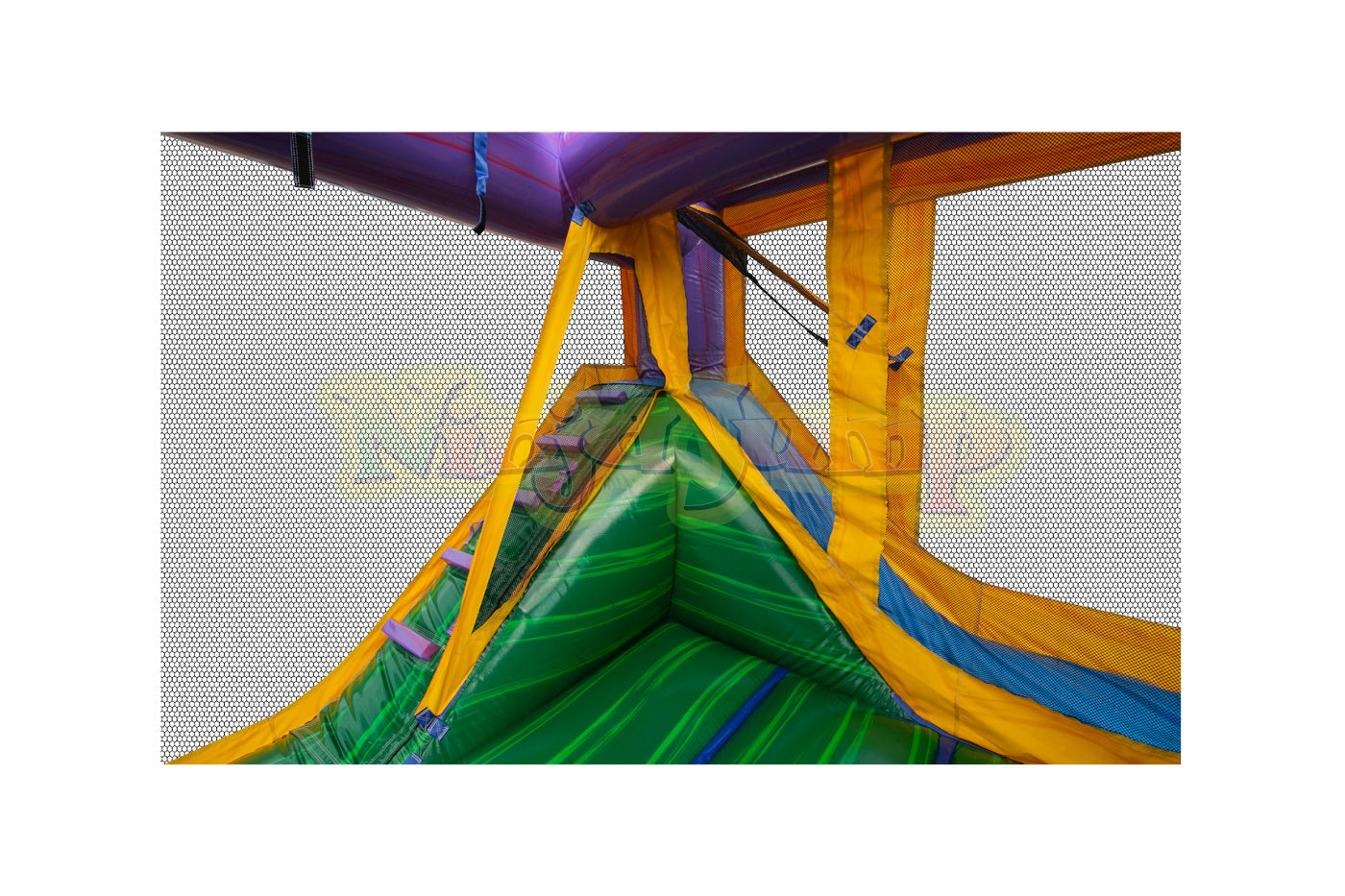 D) No Warranty is provided by EZ Inflatables, Inc. on Zippers, Netting, Mesh. The warranty shall apply to your inflatable plus all accessories, equipment and parts manufactured by EZ Inflatables, Inc.. Wear covers such as entrance covers or mats and slide covers with steps are not warranted beyond the first 90 days after buyer receives the order. These covers are intended to reduce wear on the inflatable and require periodic replacement. A product shall not be considered defective if it is a different color than shown in EZ Inflatables, Inc. catalog and/or website, and no warranty is made relating to color, digital printing or any airbrushing done on any unit. All requests of buyer for all warranty work and replacement are subject to product inspection at EZ Inflatables, Inc. factory in Glendale, California. Ordinary wear and tear will not invalidate EZ Inflatables, Inc. limited warranty, but misuse, improper handling or storage, improper repairs, improper maintenance and care, lack of ground cover under inflatable, or accidental, abusive or negligent treatment of the product will invalidate EZ Inflatables, Inc. warranty. Buyer must use stakes and all tie-down tethers at all times to insure the safety of users and the equipment. This warranty is not a guarantee that the product, will not through use, handling and storage, develop tears or punctures from time to time; the repairs of which are the responsibility of Buyer. Buyer pays a shipment cost to EZ Inflatables, Inc. for repair, and EZ Inflatables, Inc. pays the shipment cost to the Buyer after it has been repaired. No statement, remark or representation of any employee or agent of EZ Inflatables, Inc. may vary this Limited Warranty unless in writing and signed by the President of EZ Inflatables, Inc.. - Other Equipment (not manufactured by EZ Inflatables, Inc.): No warranty of any kind is extended by EZ Inflatables, Inc. but EZ Inflatables, Inc. will, to the extent it can legally and contractually do so, assign to Buyer, at Buyer's request, all warranties on such other equipment, if any, offered by the manufactures or suppliers of such other equipment. The fan motor supplied with your inflatable is covered by the blower manufacturer's own warranty. Any claims of defect in the blower operation must be directed to the blower manufacturer directly for repair or replacement. In case of defects in materials, workmanship or defects arising from the selection of material or procedures of manufacture, such defects must become apparent in the inflatable, equipment or part within 24 months of shipping. The extent of seller's liability under this warranty is to defects in material or workmanship. Defects arising from the selection of material or the processes of the manufacture are limited to the repair of such defects or to the replacement (with item free from the defect in question) of any accessory, equipment, or part which is defective in any of such respectswith the exception of color fading. The extent of seller's liability under this warranty as to defects inherent in design is limited to the correction at our expense of all such defects becoming apparent in the inflatable accessory , equipment or part purchased here within one year of use. Seller is not responsible for any lost revenue as a result of a warranty claim by buyer. Seller is not responsible for replacing any inflatable product as a “LOANER” product during a repair of a warranted product. If a “LOANER” product should be available during the repair, buyer will be responsible for all round trip shipping charges and any damages caused to the inflatable supplied. Seller shall make all such repairs, replacements and corrections with care. This warranty shall become void if inflatable is packed wet or repaired by any other repair agency not approved by EZ Inflatables, Inc..