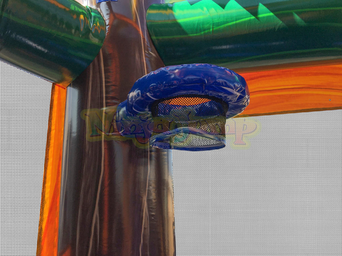 The Backyard combo style bounce house is the ultimate in inflatable jumpers! The large interior jumping area offers a basketball hoop. This bouncy castle has a climb feature and a convenient exit slide for hours of active fun! Parents and spectators are offered a clear view with the 360-degree mesh sides of this moonwalk. The Backyard combo bounce house is made of lite n strong™ fire-resistant vinyl for safety, durability and easy portability. This Backyard bouncy house is sure to make any indoor or outdoor event a great success!