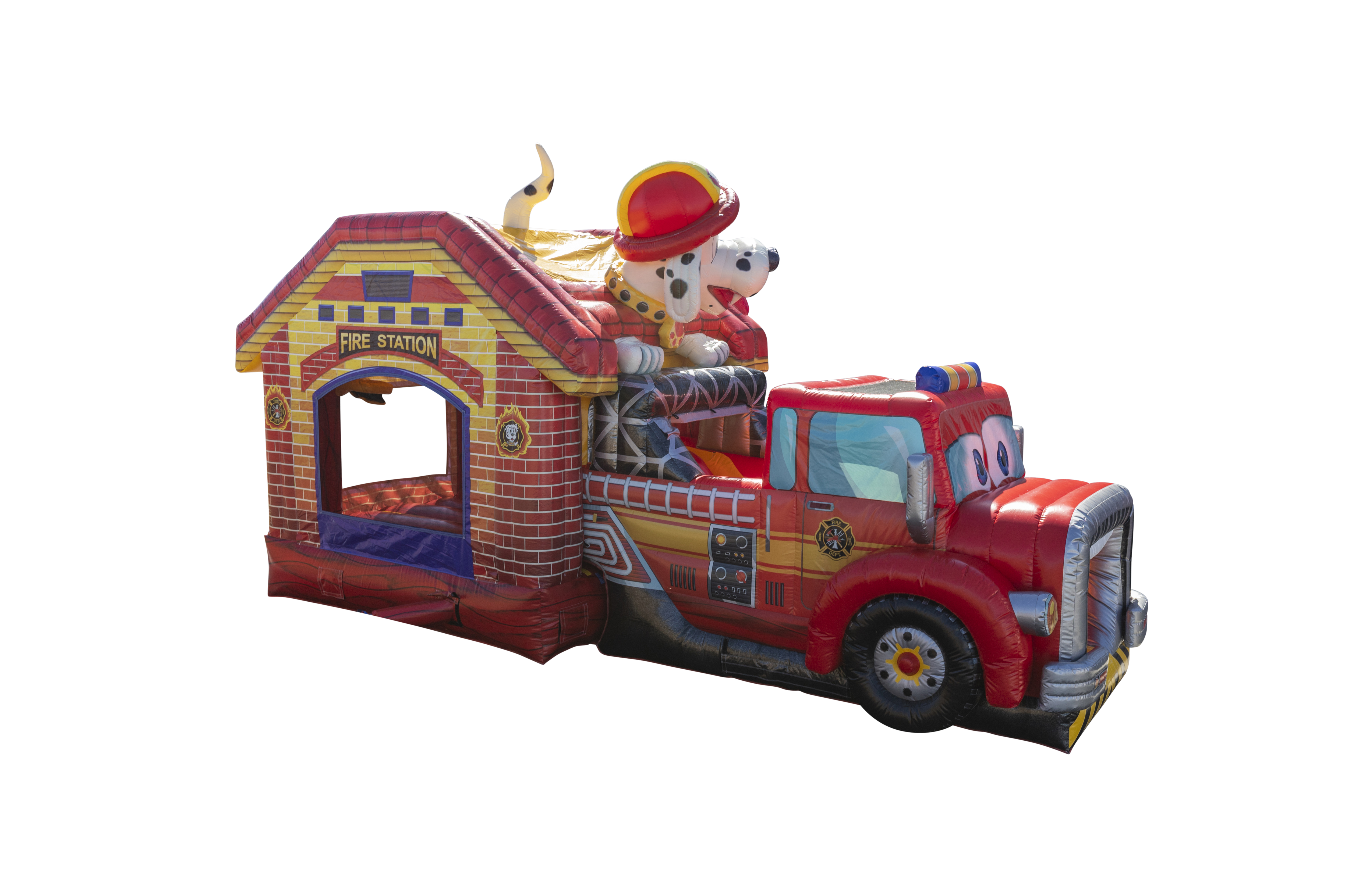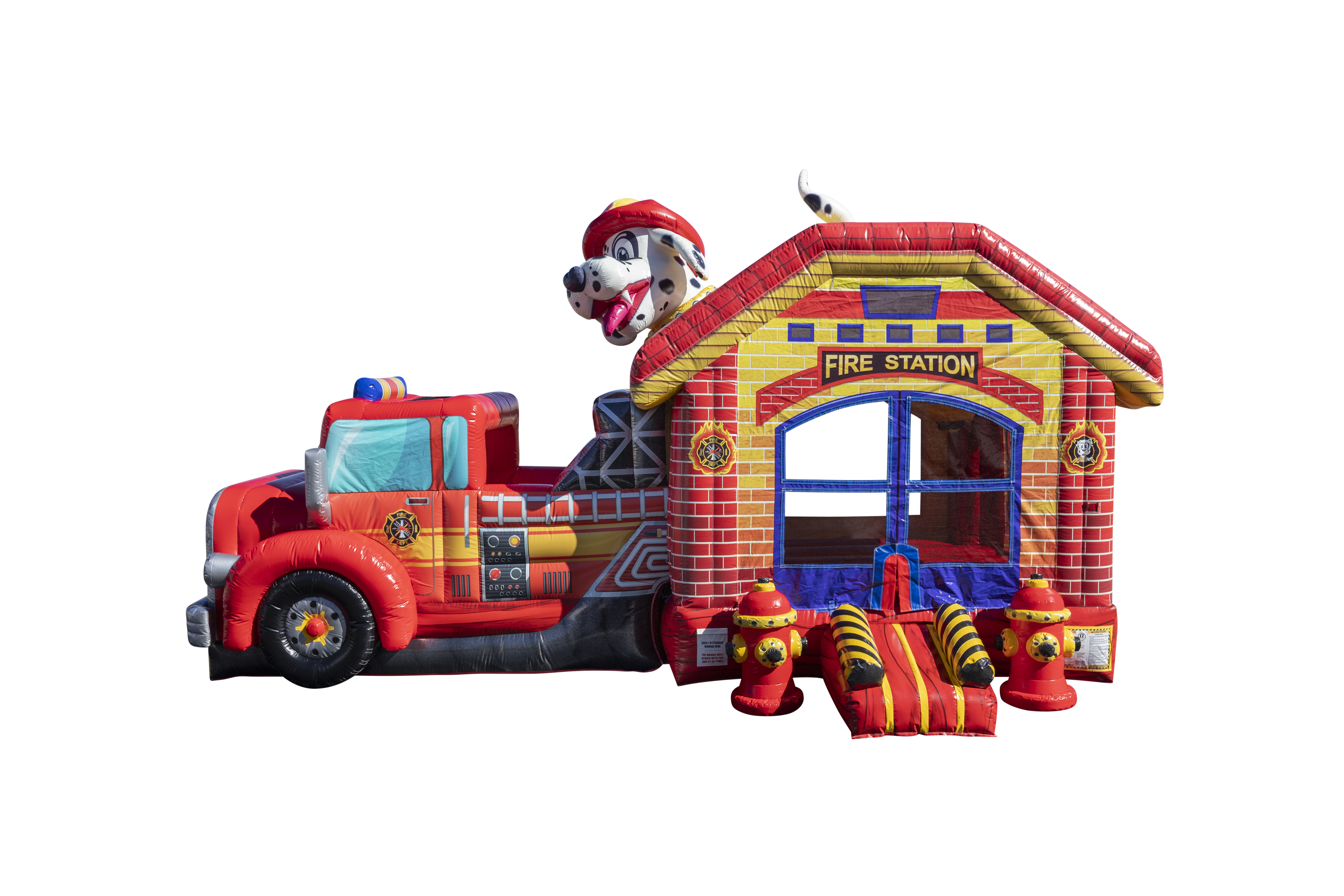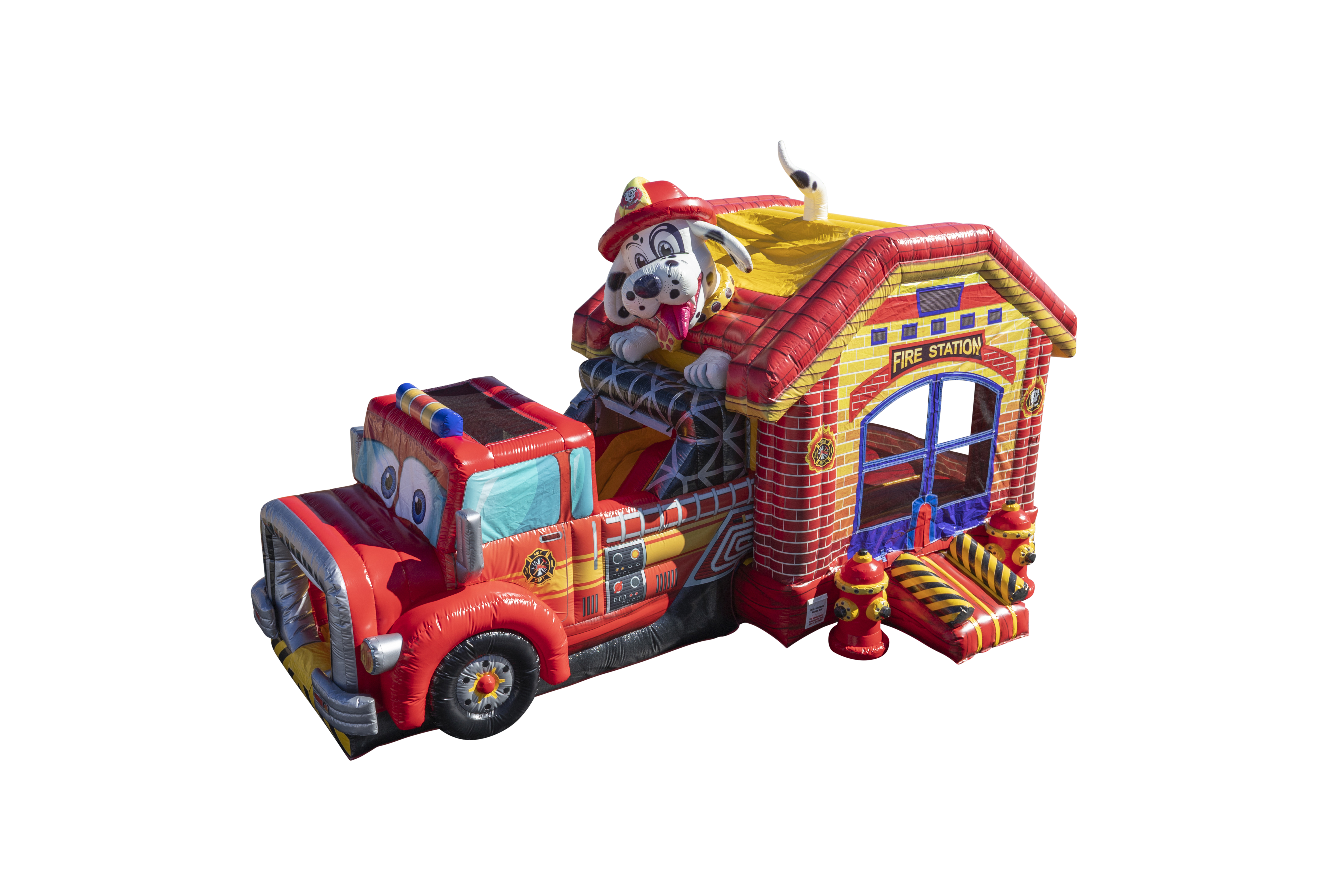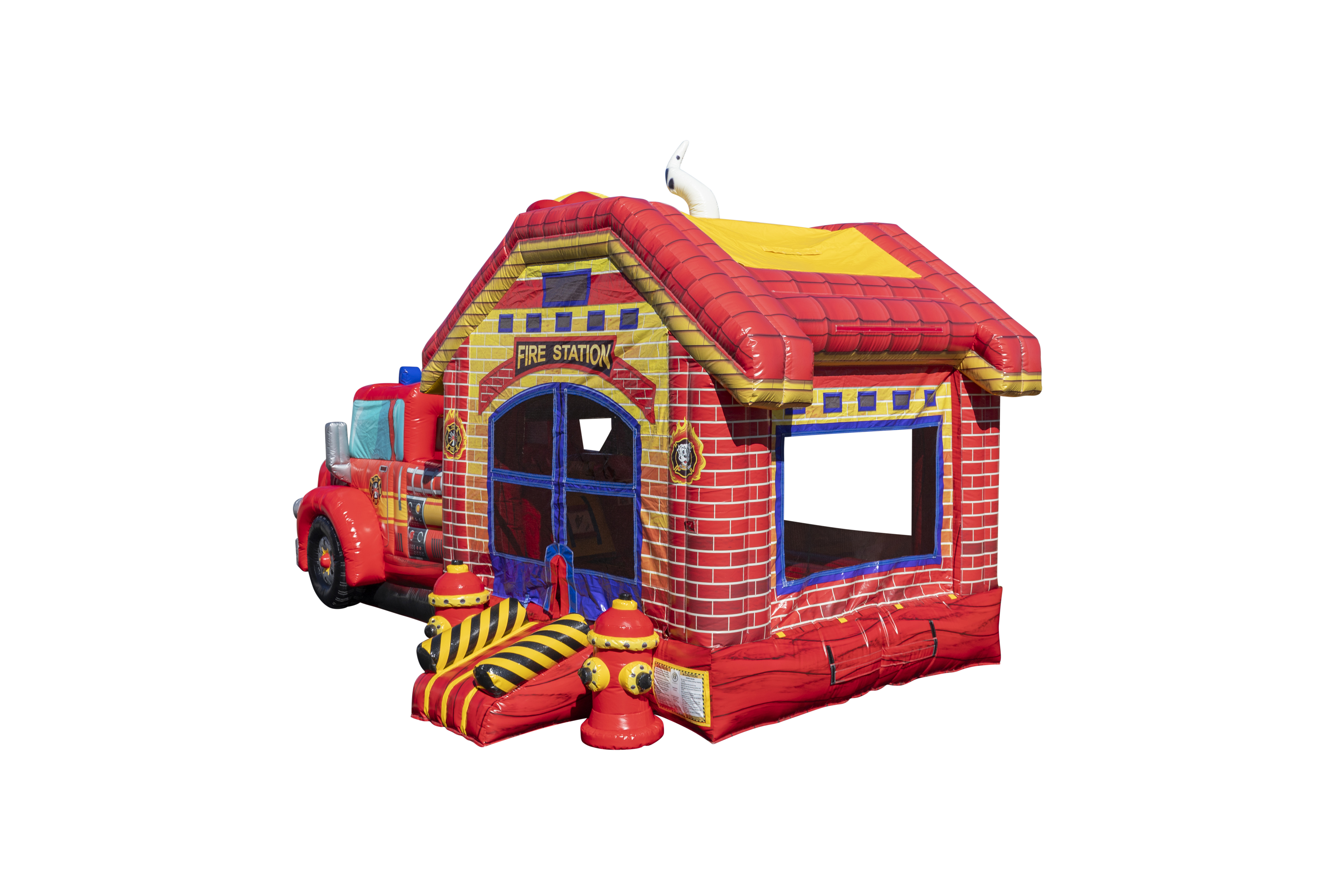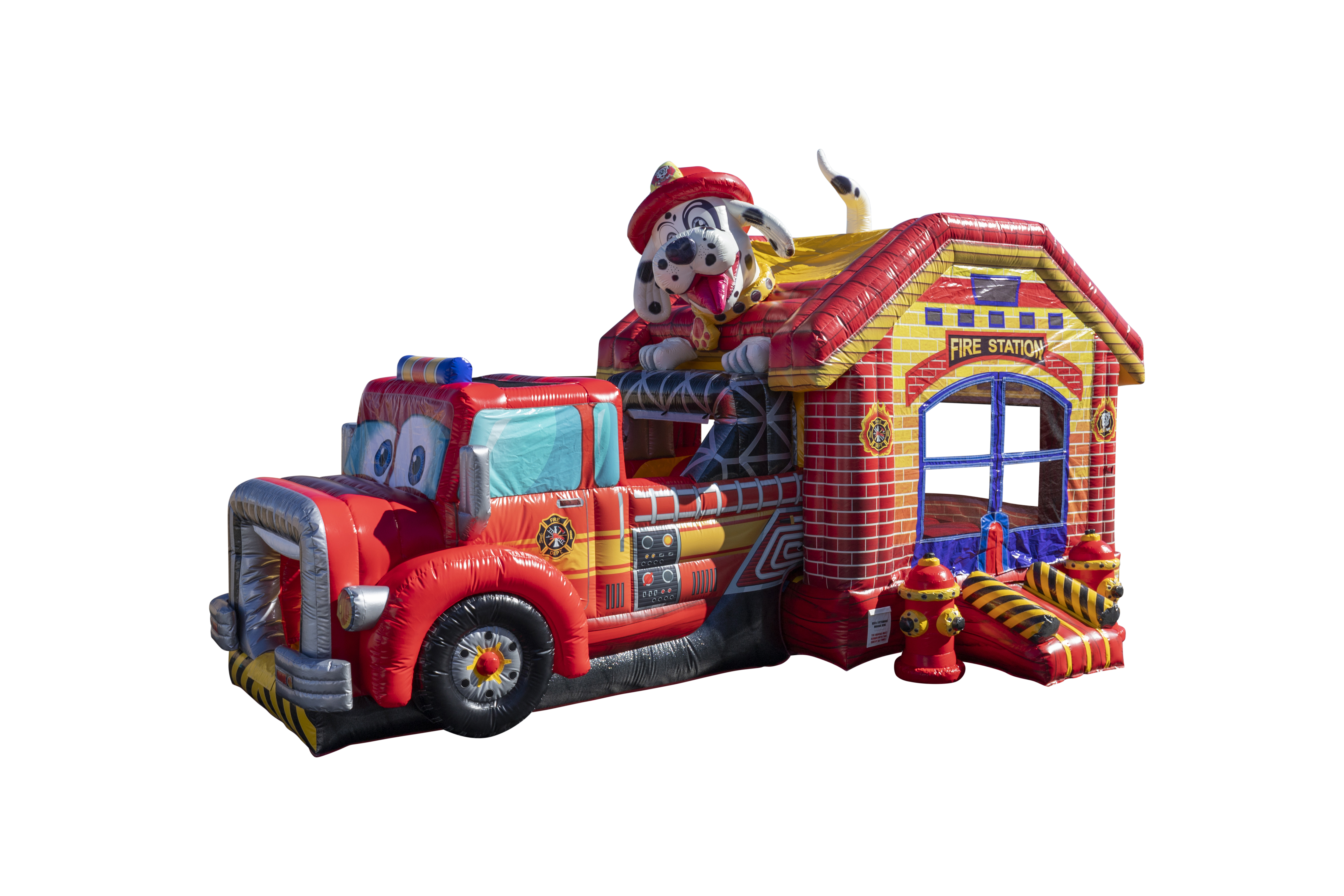 Our EZ combos have all the fun of a larger combo without the size! Complete with a roomy jumping area, basketball hoop and slide, EZ combos are the perfect compact inflatable for maximum entertainment. The Fire Station IP EZ Combo-CEZ-IP05 is a perfect unit to use inside or outside, and has a flashy design that’s sure to draw a crowd!