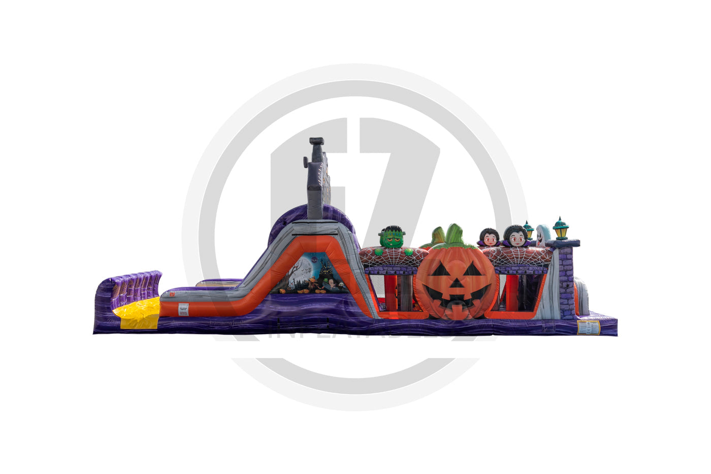 What better way to get the blood flowing and the adrenaline pumping than an EZ Inflatables Obstacle Course?! Squeeze through tunnels, jump over barriers, slip underneath bars, and push your way past any obstacle that comes your way while trying to move as fast as possible! The 47 Haunted Run Obstacle Course-I1247 is a great option for any event that wants to get people moving and having lots of competitive fun.