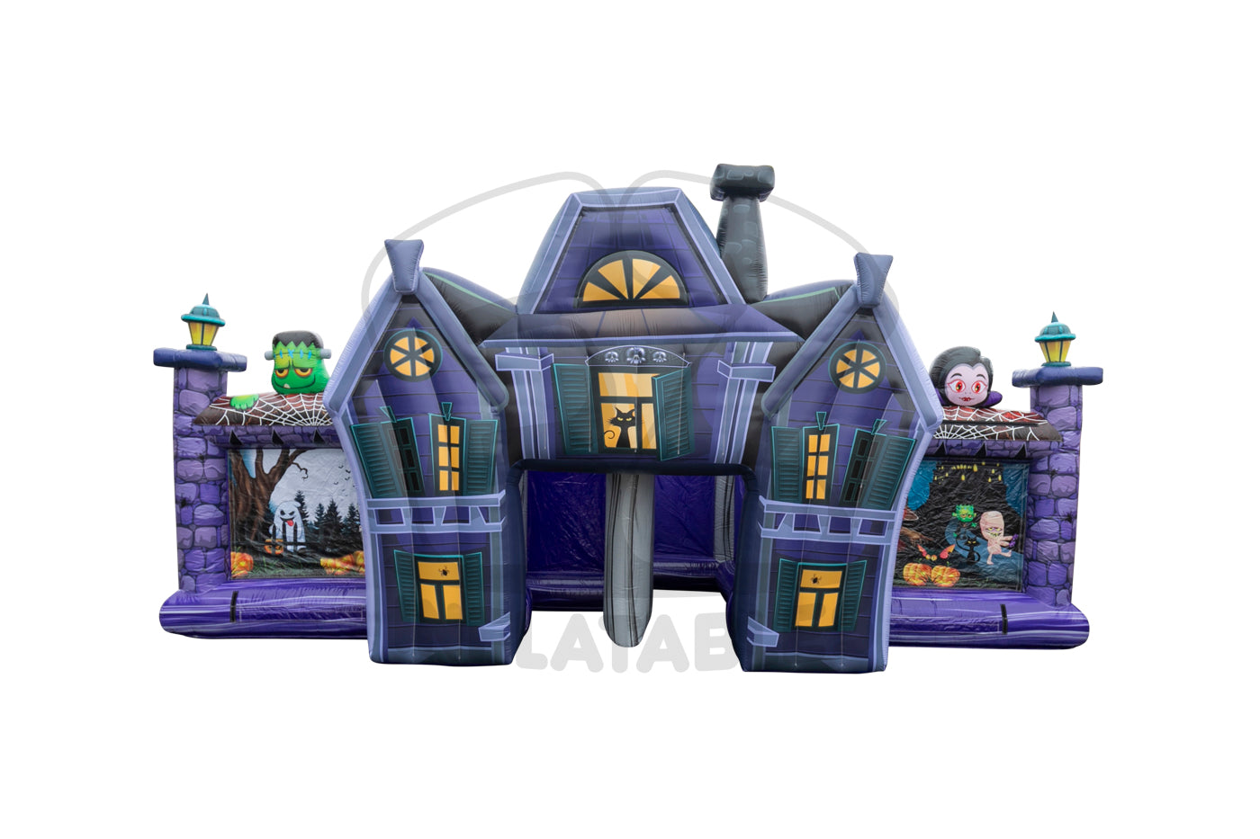 D) No Warranty is provided by EZ Inflatables, Inc. on Zippers, Netting, Mesh. The warranty shall apply to your inflatable plus all accessories, equipment and parts manufactured by EZ Inflatables, Inc.. Wear covers such as entrance covers or mats and slide covers with steps are not warranted beyond the first 90 days after buyer receives the order. These covers are intended to reduce wear on the inflatable and require periodic replacement. A product shall not be considered defective if it is a different color than shown in EZ Inflatables, Inc. catalog and/or website, and no warranty is made relating to color, digital printing or any airbrushing done on any unit. All requests of buyer for all warranty work and replacement are subject to product inspection at EZ Inflatables, Inc. factory in Glendale, California. Ordinary wear and tear will not invalidate EZ Inflatables, Inc. limited warranty, but misuse, improper handling or storage, improper repairs, improper maintenance and care, lack of ground cover under inflatable, or accidental, abusive or negligent treatment of the product will invalidate EZ Inflatables, Inc. warranty. Buyer must use stakes and all tie-down tethers at all times to insure the safety of users and the equipment. This warranty is not a guarantee that the product, will not through use, handling and storage, develop tears or punctures from time to time; the repairs of which are the responsibility of Buyer. Buyer pays a shipment cost to EZ Inflatables, Inc. for repair, and EZ Inflatables, Inc. pays the shipment cost to the Buyer after it has been repaired. No statement, remark or representation of any employee or agent of EZ Inflatables, Inc. may vary this Limited Warranty unless in writing and signed by the President of EZ Inflatables, Inc.. - Other Equipment (not manufactured by EZ Inflatables, Inc.): No warranty of any kind is extended by EZ Inflatables, Inc. but EZ Inflatables, Inc. will, to the extent it can legally and contractually do so, assign to Buyer, at Buyer's request, all warranties on such other equipment, if any, offered by the manufactures or suppliers of such other equipment. The fan motor supplied with your inflatable is covered by the blower manufacturer's own warranty. Any claims of defect in the blower operation must be directed to the blower manufacturer directly for repair or replacement. In case of defects in materials, workmanship or defects arising from the selection of material or procedures of manufacture, such defects must become apparent in the inflatable, equipment or part within 24 months of shipping. The extent of seller's liability under this warranty is to defects in material or workmanship. Defects arising from the selection of material or the processes of the manufacture are limited to the repair of such defects or to the replacement (with item free from the defect in question) of any accessory, equipment, or part which is defective in any of such respectswith the exception of color fading. The extent of seller's liability under this warranty as to defects inherent in design is limited to the correction at our expense of all such defects becoming apparent in the inflatable accessory , equipment or part purchased here within one year of use. Seller is not responsible for any lost revenue as a result of a warranty claim by buyer. Seller is not responsible for replacing any inflatable product as a āLOANERā product during a repair of a warranted product. If a āLOANERā product should be available during the repair, buyer will be responsible for all round trip shipping charges and any damages caused to the inflatable supplied. Seller shall make all such repairs, replacements and corrections with care. This warranty shall become void if inflatable is packed wet or repaired by any other repair agency not approved by EZ Inflatables, Inc..