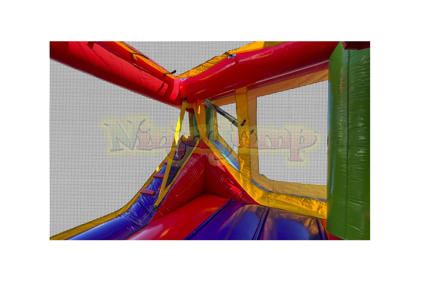 D) No Warranty is provided by EZ Inflatables, Inc. on Zippers, Netting, Mesh. The warranty shall apply to your inflatable plus all accessories, equipment and parts manufactured by EZ Inflatables, Inc.. Wear covers such as entrance covers or mats and slide covers with steps are not warranted beyond the first 90 days after buyer receives the order. These covers are intended to reduce wear on the inflatable and require periodic replacement. A product shall not be considered defective if it is a different color than shown in EZ Inflatables, Inc. catalog and/or website, and no warranty is made relating to color, digital printing or any airbrushing done on any unit. All requests of buyer for all warranty work and replacement are subject to product inspection at EZ Inflatables, Inc. factory in Glendale, California. Ordinary wear and tear will not invalidate EZ Inflatables, Inc. limited warranty, but misuse, improper handling or storage, improper repairs, improper maintenance and care, lack of ground cover under inflatable, or accidental, abusive or negligent treatment of the product will invalidate EZ Inflatables, Inc. warranty. Buyer must use stakes and all tie-down tethers at all times to insure the safety of users and the equipment. This warranty is not a guarantee that the product, will not through use, handling and storage, develop tears or punctures from time to time; the repairs of which are the responsibility of Buyer. Buyer pays a shipment cost to EZ Inflatables, Inc. for repair, and EZ Inflatables, Inc. pays the shipment cost to the Buyer after it has been repaired. No statement, remark or representation of any employee or agent of EZ Inflatables, Inc. may vary this Limited Warranty unless in writing and signed by the President of EZ Inflatables, Inc.. - Other Equipment (not manufactured by EZ Inflatables, Inc.): No warranty of any kind is extended by EZ Inflatables, Inc. but EZ Inflatables, Inc. will, to the extent it can legally and contractually do so, assign to Buyer, at Buyer's request, all warranties on such other equipment, if any, offered by the manufactures or suppliers of such other equipment. The fan motor supplied with your inflatable is covered by the blower manufacturer's own warranty. Any claims of defect in the blower operation must be directed to the blower manufacturer directly for repair or replacement. In case of defects in materials, workmanship or defects arising from the selection of material or procedures of manufacture, such defects must become apparent in the inflatable, equipment or part within 24 months of shipping. The extent of seller's liability under this warranty is to defects in material or workmanship. Defects arising from the selection of material or the processes of the manufacture are limited to the repair of such defects or to the replacement (with item free from the defect in question) of any accessory, equipment, or part which is defective in any of such respectswith the exception of color fading. The extent of seller's liability under this warranty as to defects inherent in design is limited to the correction at our expense of all such defects becoming apparent in the inflatable accessory , equipment or part purchased here within one year of use. Seller is not responsible for any lost revenue as a result of a warranty claim by buyer. Seller is not responsible for replacing any inflatable product as a “LOANER” product during a repair of a warranted product. If a “LOANER” product should be available during the repair, buyer will be responsible for all round trip shipping charges and any damages caused to the inflatable supplied. Seller shall make all such repairs, replacements and corrections with care. This warranty shall become void if inflatable is packed wet or repaired by any other repair agency not approved by EZ Inflatables, Inc..
