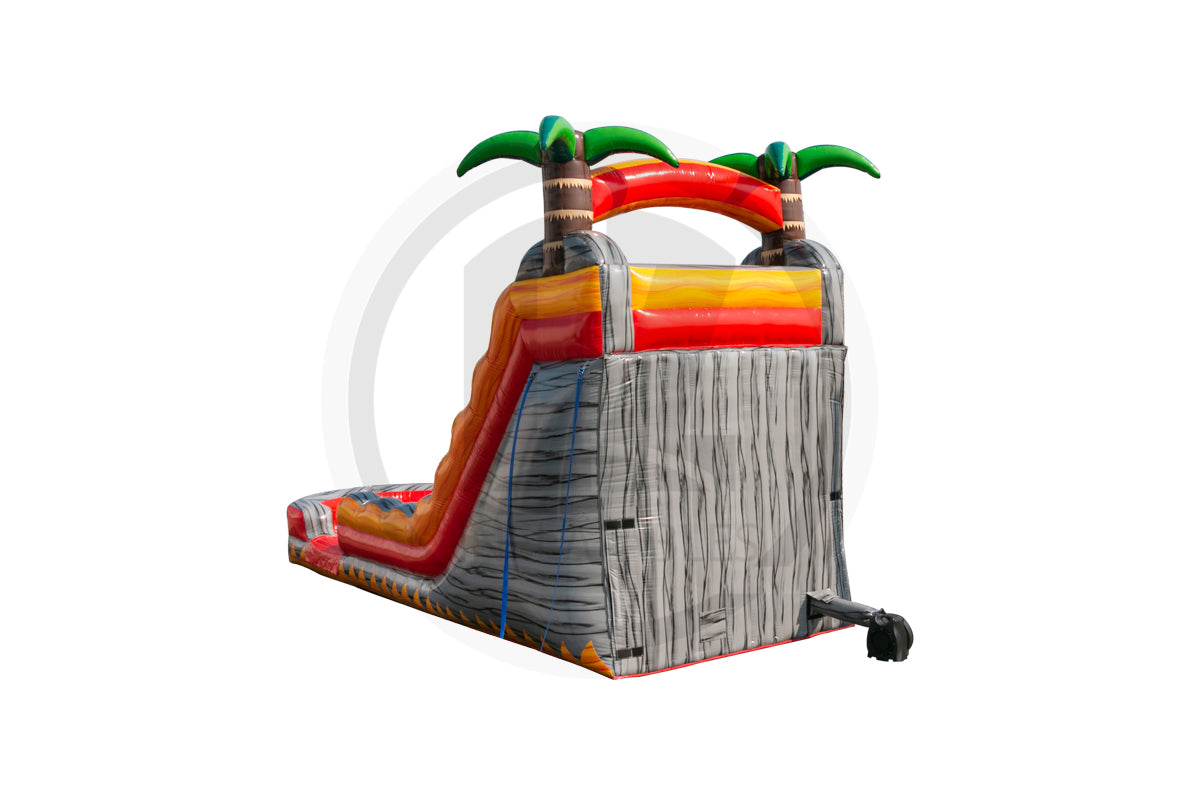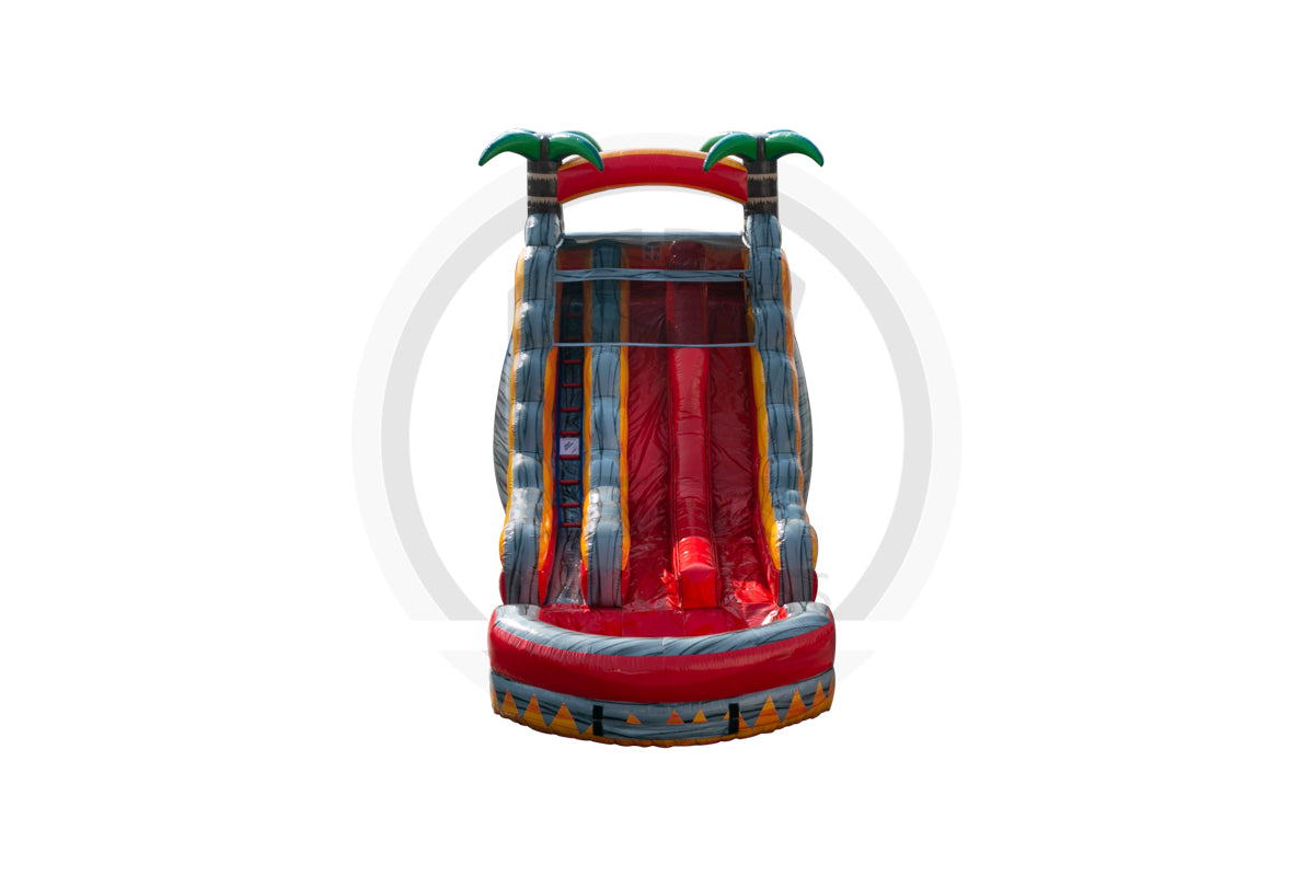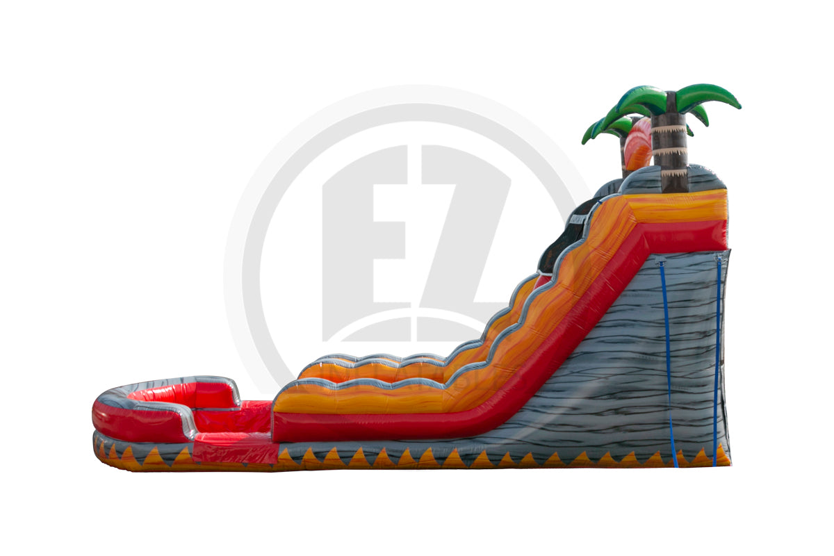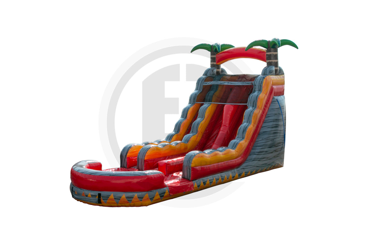 18 Ft Tropical Lava Rush Dual Lane EZ Inflatables Water Slide. It’s a perfect option for any event where folks want to cool off and have some adrenaline-pumping fun. Dimensions: 36'x13'x18', stakes, transportation bag. 1 year limited warranty