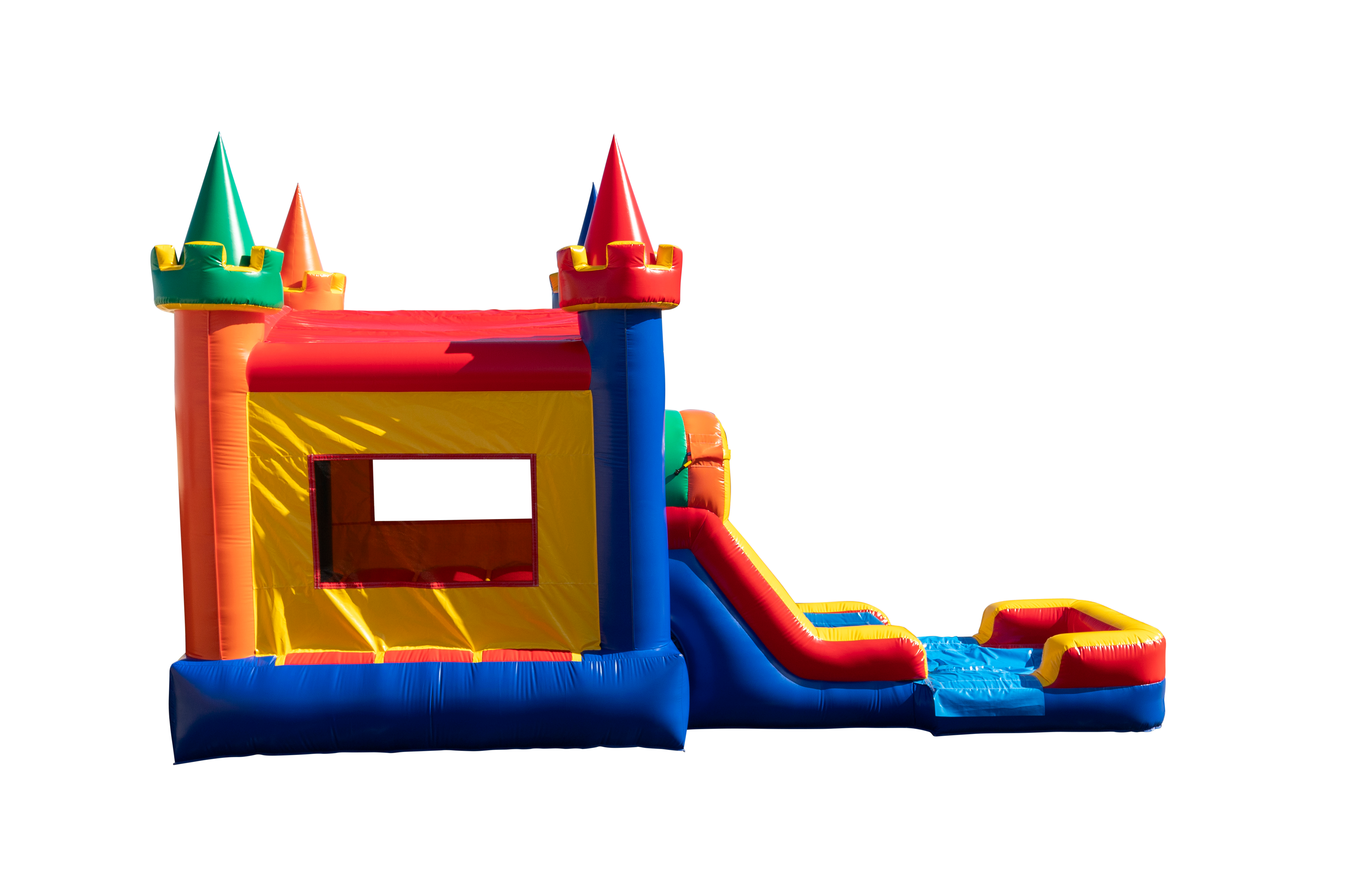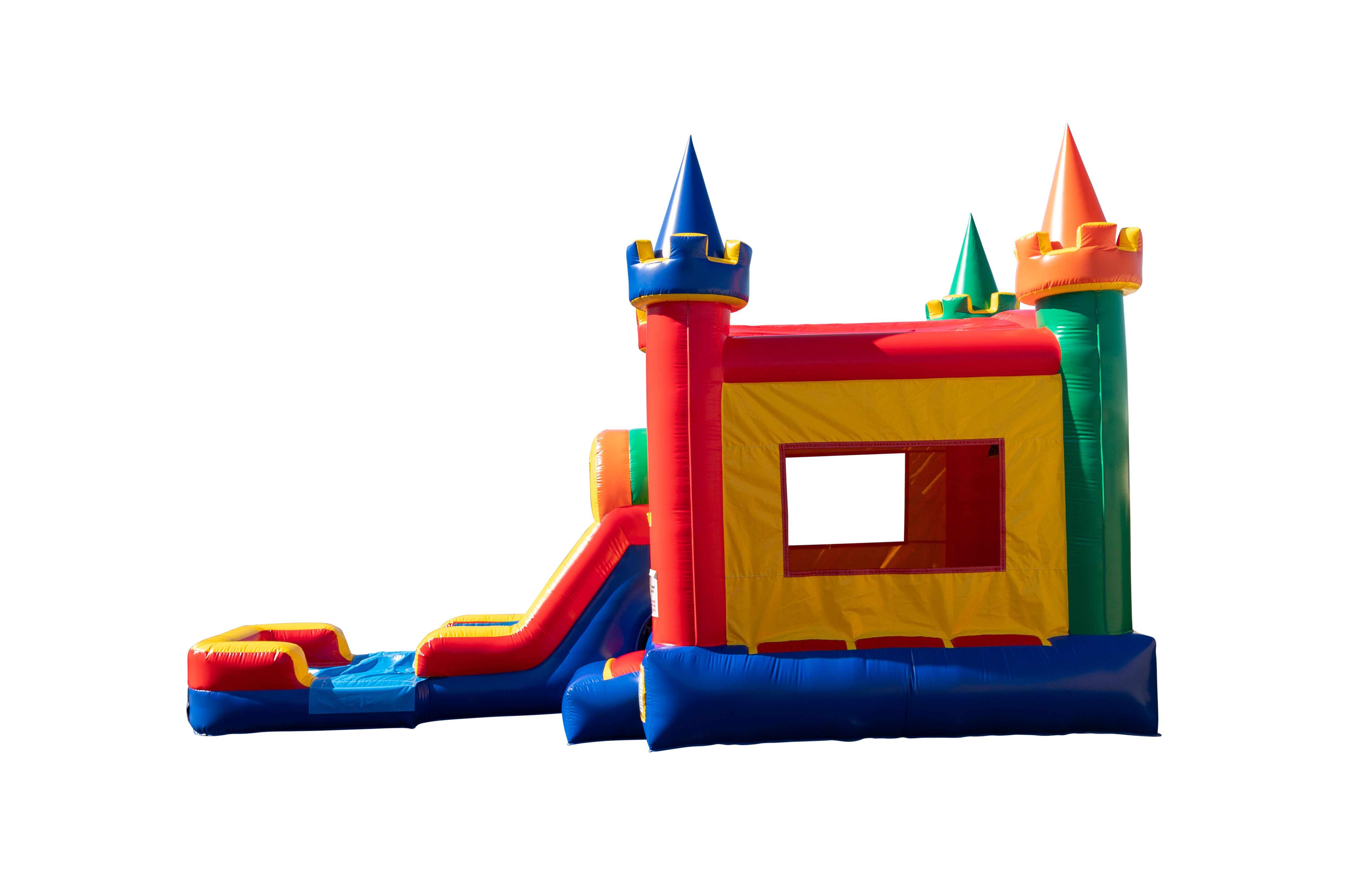 Our EZ combos have all the fun of a larger combo without the size! Complete with a roomy jumping area, basketball hoop and slide, EZ combos are the perfect compact inflatable for maximum entertainment. The Castle Rainbow IP SL EZ Combo-CEZ-IP10 is a perfect unit to use inside or outside, and has a flashy design that’s sure to draw a crowd!