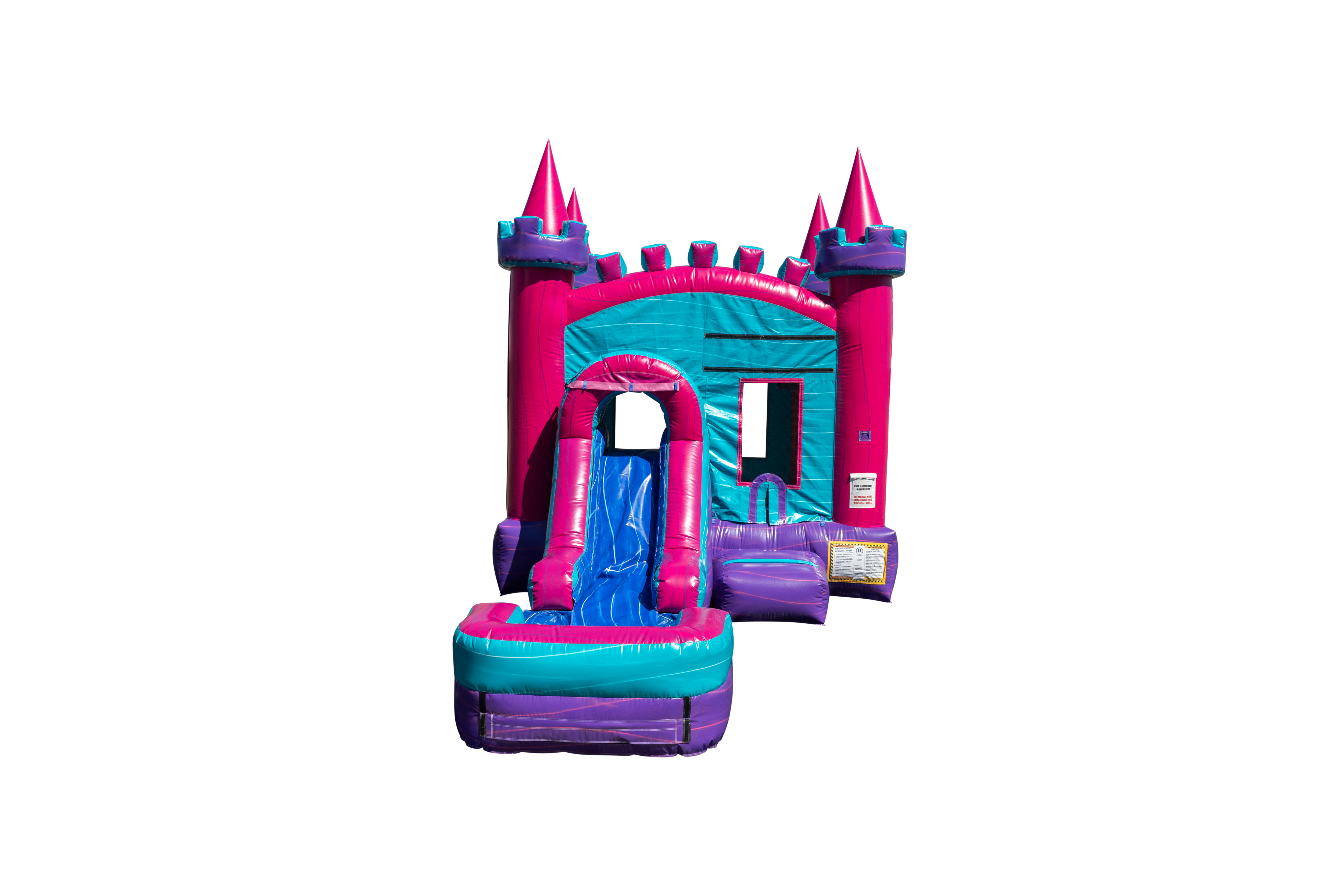 Our EZ combos have all the fun of a larger combo without the size! Complete with a roomy jumping area, basketball hoop and slide, EZ combos are the perfect compact inflatable for maximum entertainment. The Royal Princess SL IP EZ Combo-CEZ-IP09 is a perfect unit to use inside or outside, and has a flashy design that’s sure to draw a crowd!